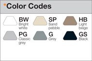 * To complete the item number, add the color code (e.g., BWS45BW or BWS100GS)