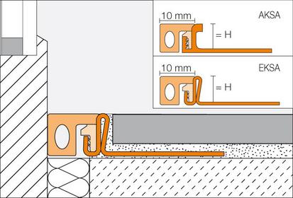 Schluter-DILEX-KSA is available with a stainless steel anchoring leg. All profiles feature a thermoplastic rubber movement zone.