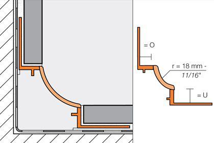 The profile's 11/16" (18 mm) radius prevents the accumulation of dirt and makes cleaning simple. The profile separates the tile fields that meet at inside corners where limited movement is expected.