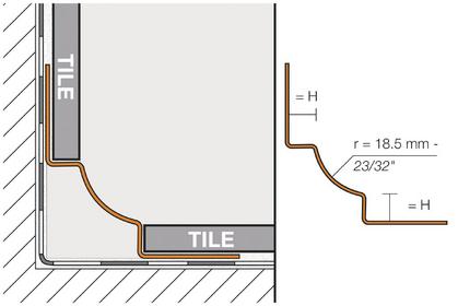 The profile's 23/32" (18.5 mm) radius prevents the accumulation of dirt and makes cleaning simple. The profile separates the tile fields that meet at inside corners where limited movement is expected.